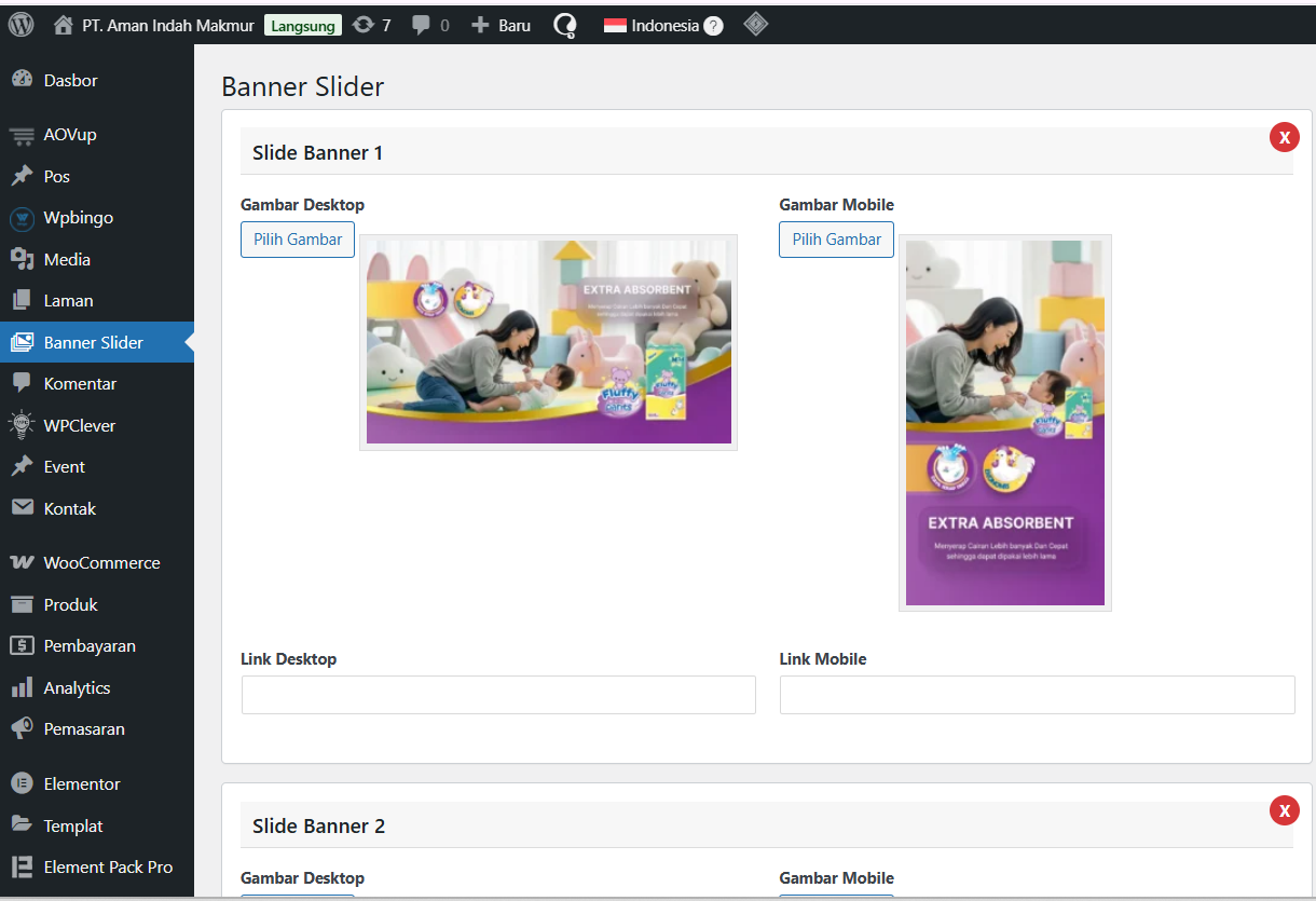 - Slide Tanpa Batas: Tambahkan banner sebanyak yang Anda butuhkan.